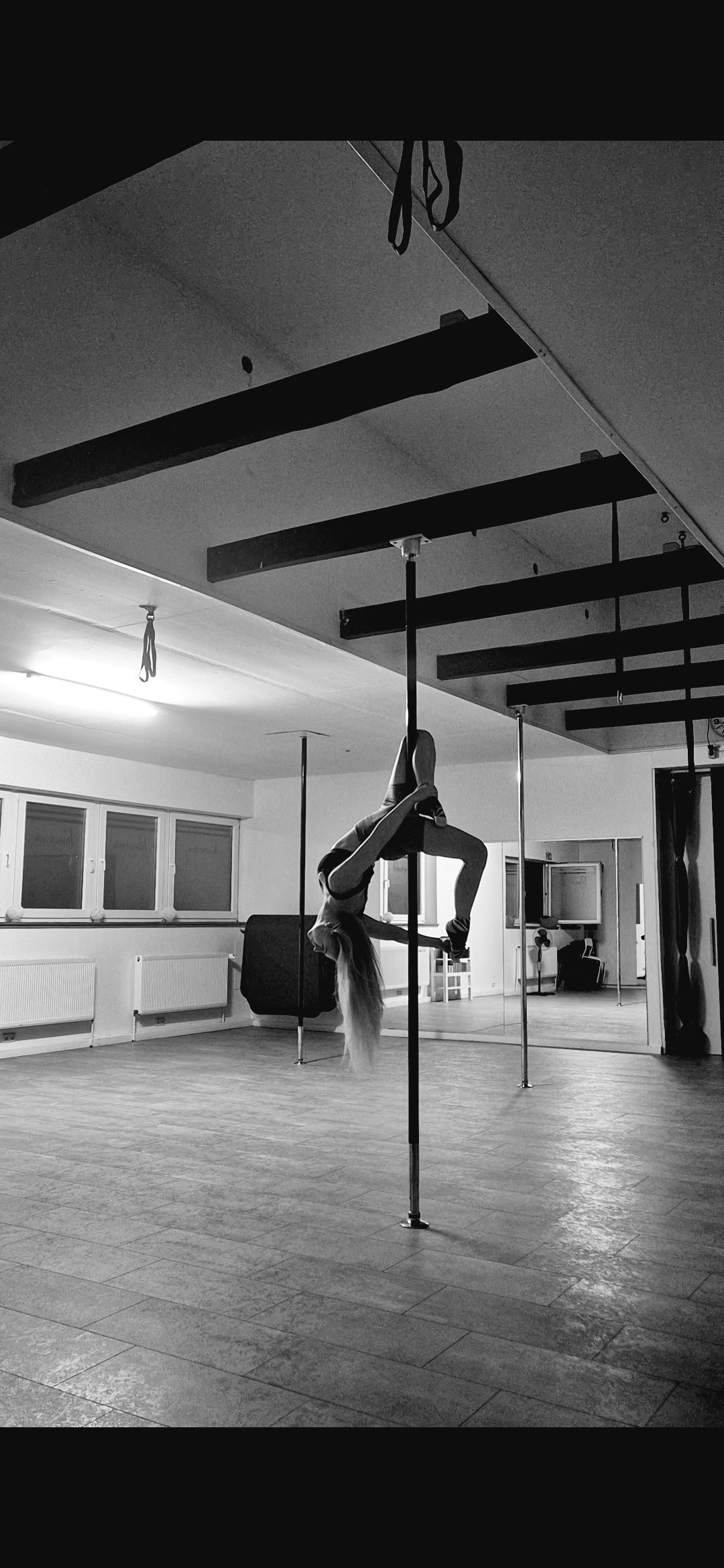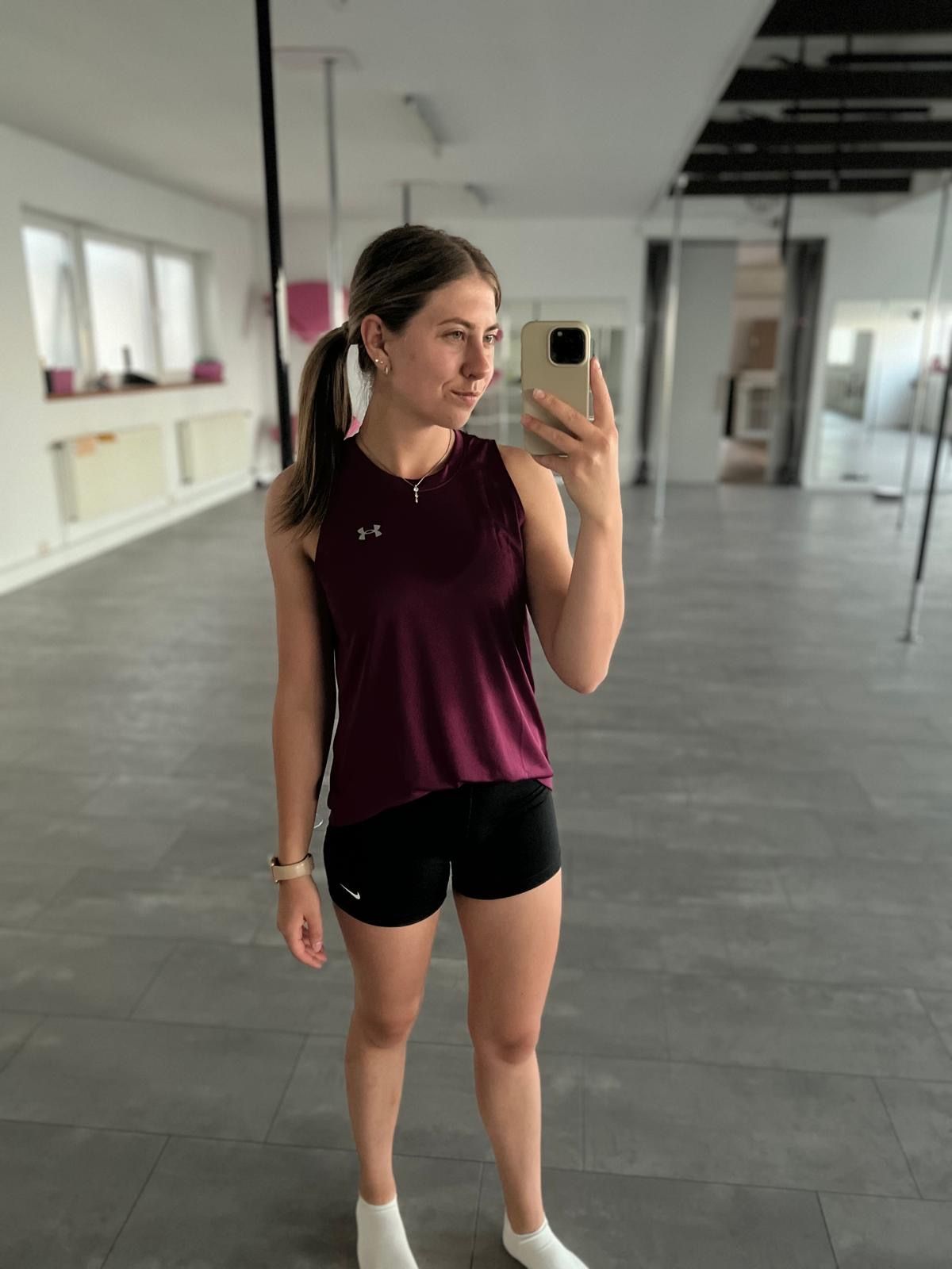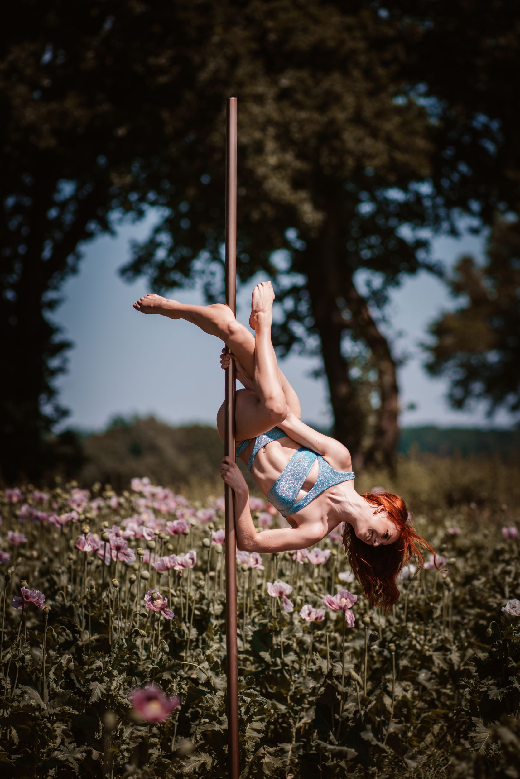 Ihre eigene Reise an der Pole begann 2021 mit einer Schnupperstunde. Seitdem trainiert sie regelmäßig an der Pole und ergänzend Krafttraining, Ausdauertraining und Stretching.