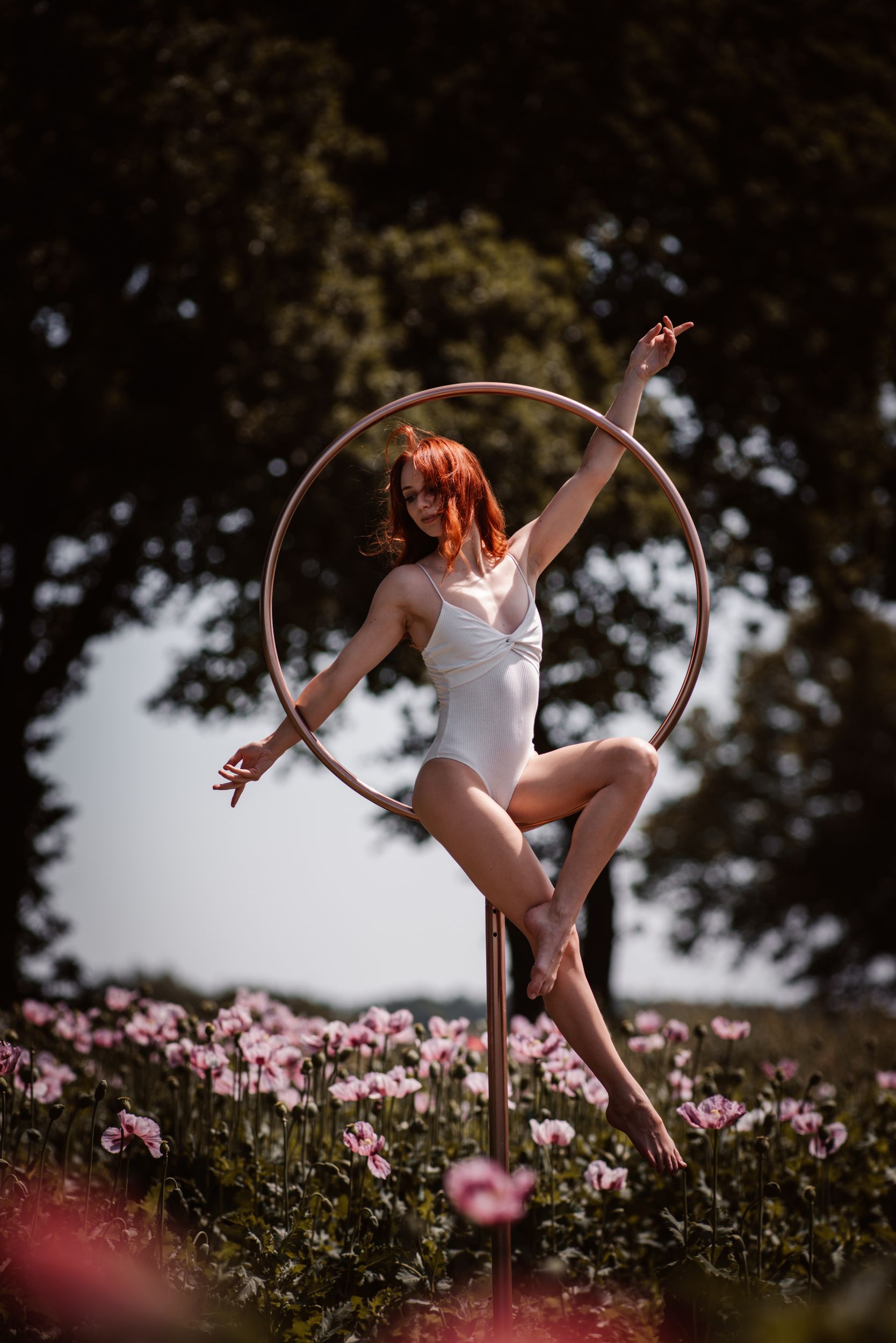 … ist unsere Fotografin für alle Aerial Sportarten. Seit ihrem Pole Dance Newbieskurs Anfang 2023 ist sie so begeistert von der Ästhetik und Kraft, die sie in diesem Sport ausleben kann. Es hat nicht lange gedauert, bis sie sich auch an einen Hoop getraut hat.
